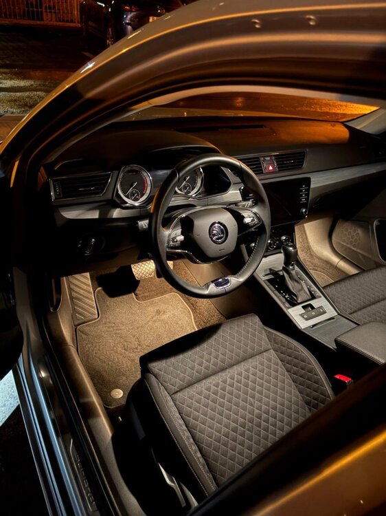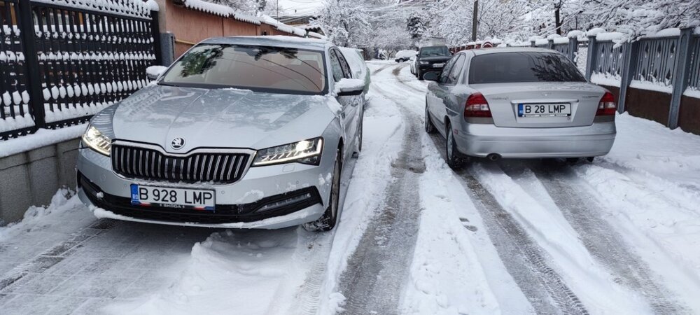 Undeva la finele lunii Octombrie 2025 s-a alaturat familiei un nou membru. Mai exact, o Skoda Superb 3 2021, echipare Ambition, 1.5TSI 150CP, DSG (DQ 200). Am decis sa merg pe un Superb din prisma faptului ca Octavia 4 mi s-a parut mai proasta ca materiale la interior, multe comenzi care s-au montat pe tableta si punte pe spate. Superbul are un interior bine inchegat, plastic moale pe bord + usi, schimbator clasic, cat si o multitudine de butoane utile la indemana. Design clasic, dar si functionalitati moderne, cum ar fi scaune incalzite, parbriz incalzit, adaptive cruise control, senzori de parcare fata + spate, portbagaj cu deschidere automata, plus multe altele. Masina a fost luata de la Avia Motors Pantelimon cu 52.423 km la bord. Aici trebuie sa le multumesc lui @mirceajo si @Eugen ca m-au ajutat in tot procesul de inspectie si achizitie. Primele poze din ziua achizitiei. Exterior Interior Primul lucru pe care i l-am luat a fost un set de incaltari All-Season Pirelli Cinturato SF3, printre putinele anvelope all-season cu clasa A la aderenta. Ulterior i-am comandat si de pe Kopacek un set de presuri de cauciuc, ca nu sunt fan presuri de stofa, plus accesorii pentru cheie ca mi se parea prea "chioara" doar cu plasticul ala negru. Ma asteptam la un Superb sa arate mai bine cheia. Am reusit sa imortalizez masinile si in ordinea varstei. :)) In ianuarie 2026 le-am prins si cele doua doamne argintii la o sueta. Nu in ultimul rand, Octavia a parasit familia in urma cu o saptamana, dar brelocul l-am pastrat. :D