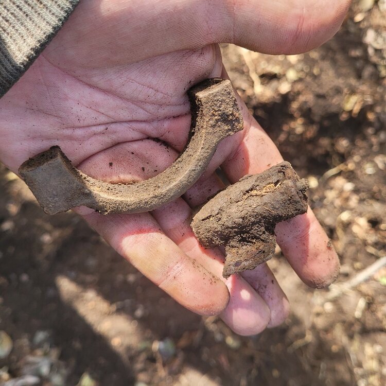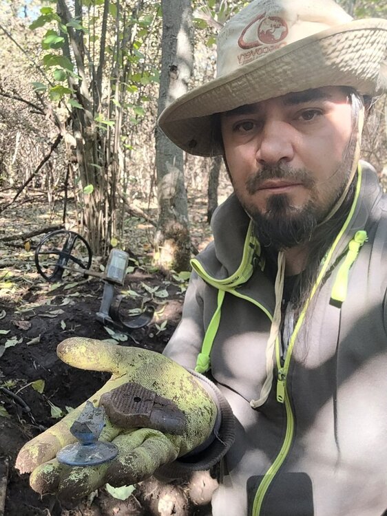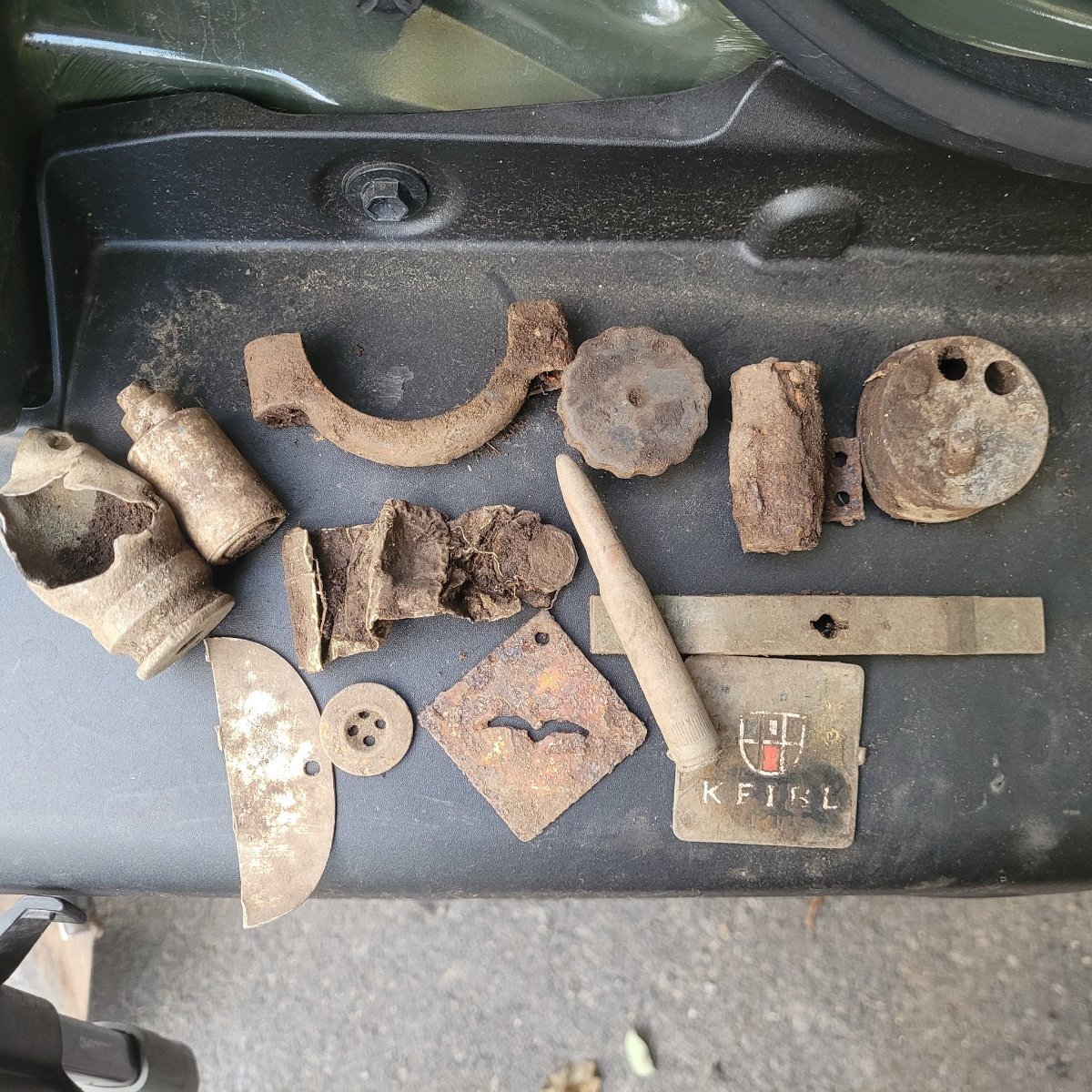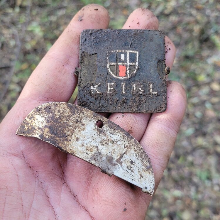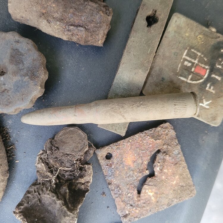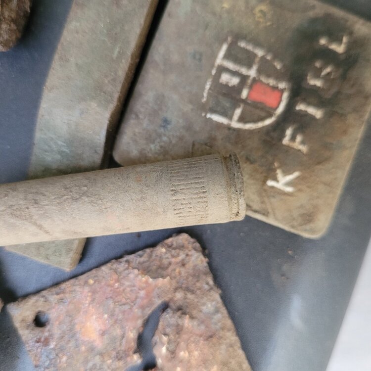 La groapa de gunoi nu a mai mers treaba... am mai gasit o portiune cu gunoi la suprafata, dar majoritar cioburi de geam, cateva piese auto mici, bucati de furtun, cheder etc Am batut padurea prin diverse locuri, pe final de zi am reusit sa scot un tag german (blank, din pacate), la 2 pasi mai incolo un tub de antrenament 7.92 si la alti 2-3 pasi sigla auto Ferdinand Keibl