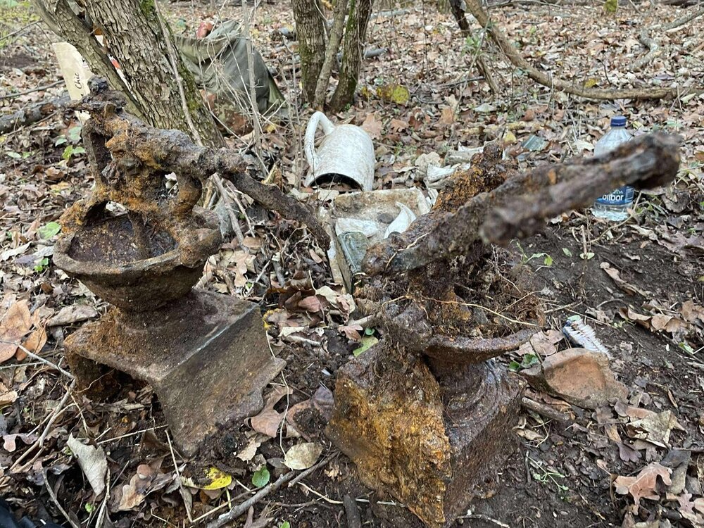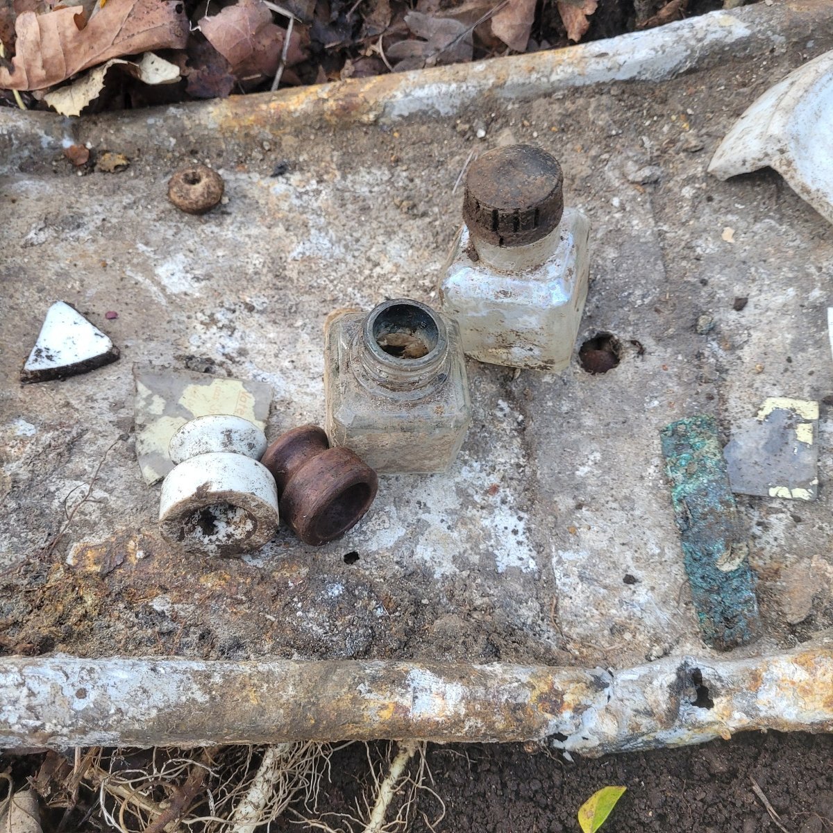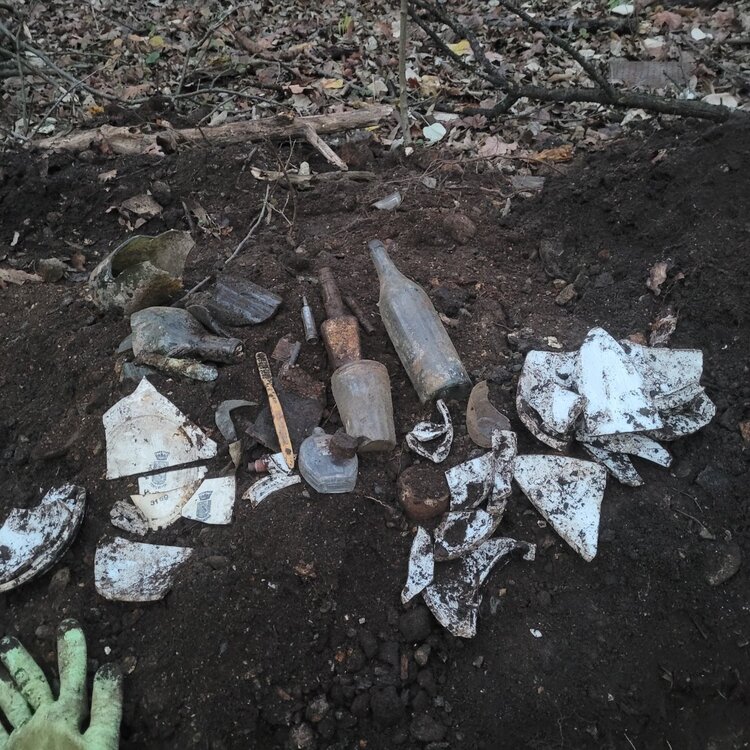 Tot in aceeasi padure, un prieten a avut norocul sa mai descopere o groapa de gunoi. Pare mai mare ca prima, urmeaza sa o mai exploram saptamana viitoare. 3 rasnite de cafea marca Peugeot. Sticle, sticlute, calimari, cioburi de geam, de sticle si de vesela. O baterie pt lanterna marcata "wermacht", bucati de oglinda cu producatorul pe spate etc