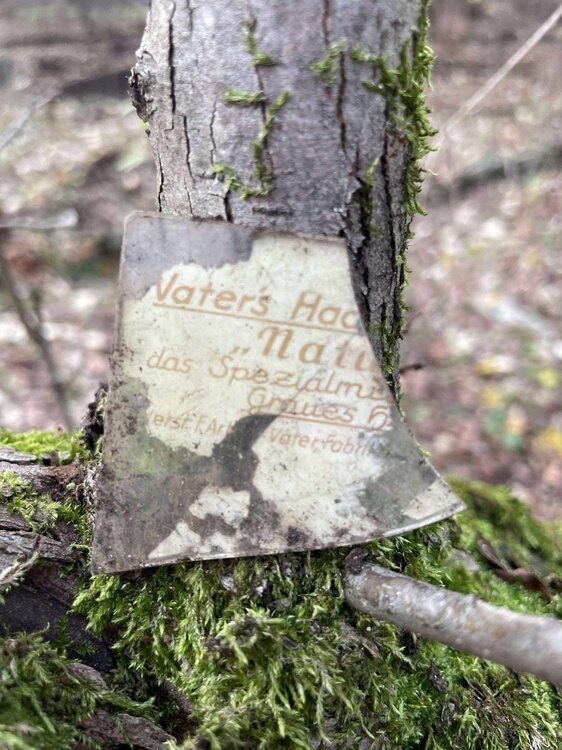 La groapa de gunoi nu a mai mers treaba... am mai gasit o portiune cu gunoi la suprafata, dar majoritar cioburi de geam, cateva piese auto mici, bucati de furtun, cheder etc Am batut padurea prin diverse locuri, pe final de zi am reusit sa scot un tag german (blank, din pacate), la 2 pasi mai incolo un tub de antrenament 7.92 si la alti 2-3 pasi sigla auto Ferdinand Keibl