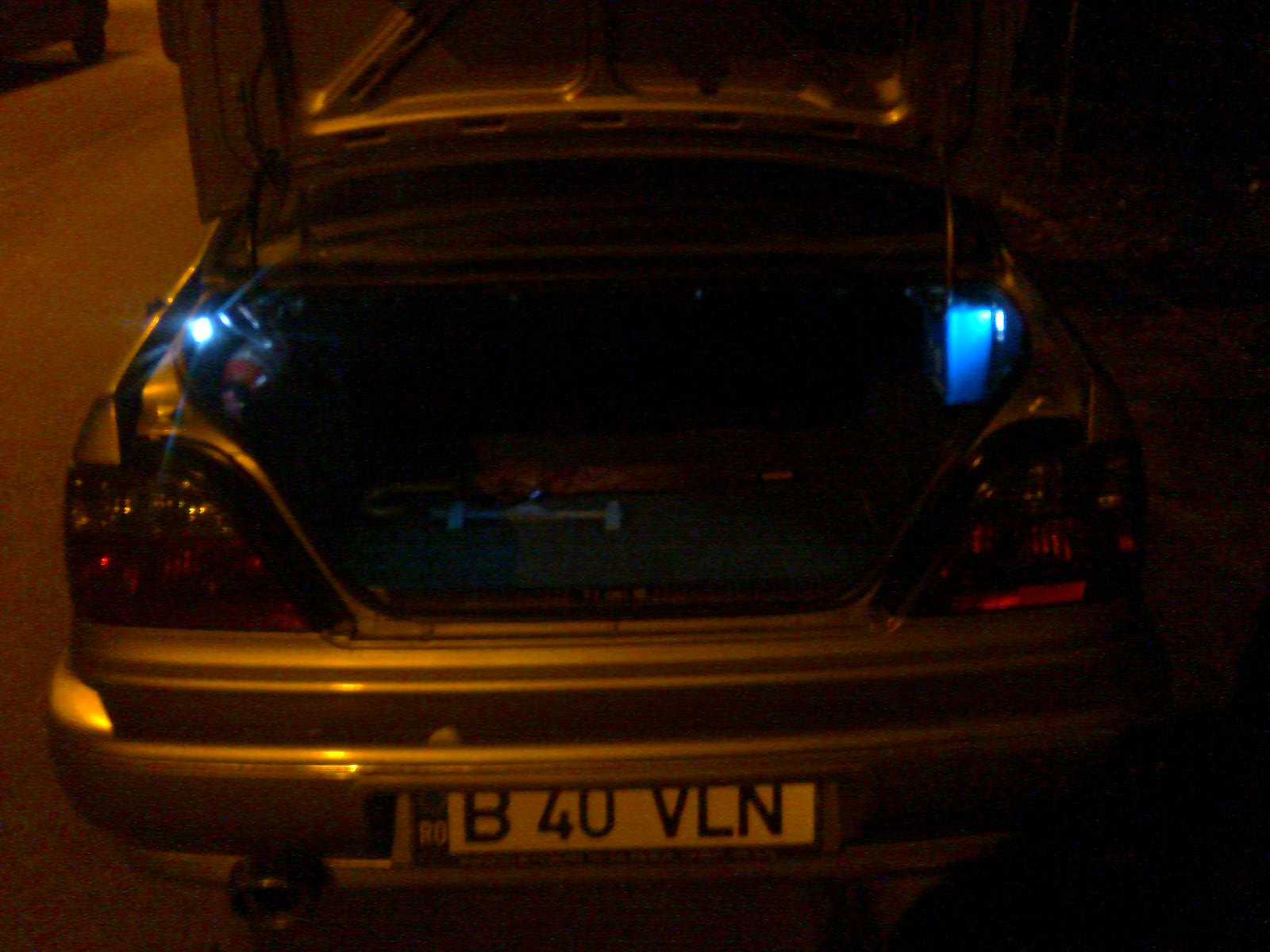 M-am ocupat putin de cielito.I-am uns chederele cu silicon special,i-am inlocuitt becurile de pozitie spate 21w cu 5w sa nu mai fie diferenta intre intensitati,se vede diferenta in poza,i-am montat si noile becuri-led in lampile portbagaj.Luni ma apuc si de inlocuit bornele bateriei si pe o curatenie probabil,motor,silicon bord,aspirator si baita cu spuma.In rest multa bafta.