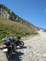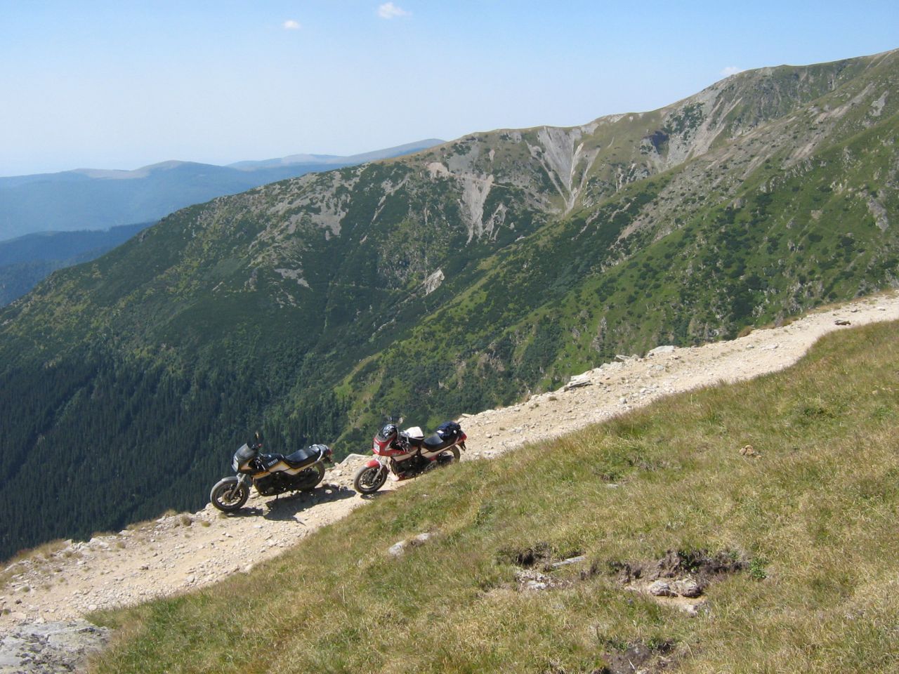 Am reusit conform planului sa ajung si pe Transalpina. Drumul este intr-adevar foarte greu, dar nu si foarte rau. Este pietruit, nu forestier, si nu are gropi sau santuri de tractor. Pietrele sunt din ce in ce mai mari pe masura ce ajungi mai sus, dar nu sunt bolovani. Motorul meu e de strada, sport-touring, dar nu am lovit niciodata cu scutul de plastic si nici nu am avut emotii ca as atinge. Ciobanii trec pe acolo destul de des si probabil mai curata drumul. Efortul fizic insa este mult mai mare pe 2 roti, deoarece din cauza pietrelor roata fata se misca brusc stanga-dreapta, si e nevoie de o putere foarte mare in brate pentru a tine ghidonul drept si a te impotrivi incercarilor motorului de a te arunca jos. Dar asta face parte din pachetul complet de senzatii tari si te face sa te simti mai in mijlocul evenimentelor decat daca ai sta comod in masina. E ca si cum ai urca pe jos in loc de telecabina. De fapt mai exact ar fi ca si cum ai urca in maini . Am mers pe traseul Bucuresti-Voineasa (unde am dormit la hotel - preturi foarte mici, 60 de lei camera dubla), apoi plecat sambata dimineata Voineasa-Obarsia Lotrului - Pasul Urdele (are ~2160m, nu 2228 cum zic unii - probabil 2228 are varful Urdele) - Ranca - Novaci - Rm Valcea - Curtea de Arges - Campulung - Targoviste - Bucuresti. Total 650km. Pana la Voineasa drumul a fost excelent, pana aproape de Obarsie bun, iar apoi s-a terminat asfaltul. La intoarcere, de la Ranca la DN-ul principal de Tg Jiu asfalt ok, iar dupa aia foarte bun. La urcare, destul de sus ne-am intalnit cu un cielo care venea din partea cealalta a muntelui. A intrebat cum e drumul in continuare si l-am incurajat spunandu-i ca mai greu decat in locul acela unde ne aflam nu e. Mai departe ne-am intalnit cu un Aro cu o remorca cu branza si alte chestii care mergea in acelasi sens cu noi, iar dupa ce am trecut de Urdele, la putin timp am vazut 2 Skoda Superb trase pe dreapta. Oricum e mult mai accesibil venind din sud, dupa ce am trecut de Urdele drumul a devenit mult mai bun. Nu am facut poze cu zonele cele mai dificile, pentru ca in acele momente aveam alte lucruri de facut, dar am oprit special sa fac o poza la o zona surpata. Mi s-a parut destul de ingust, dar daca a trecut Cielo-ul...