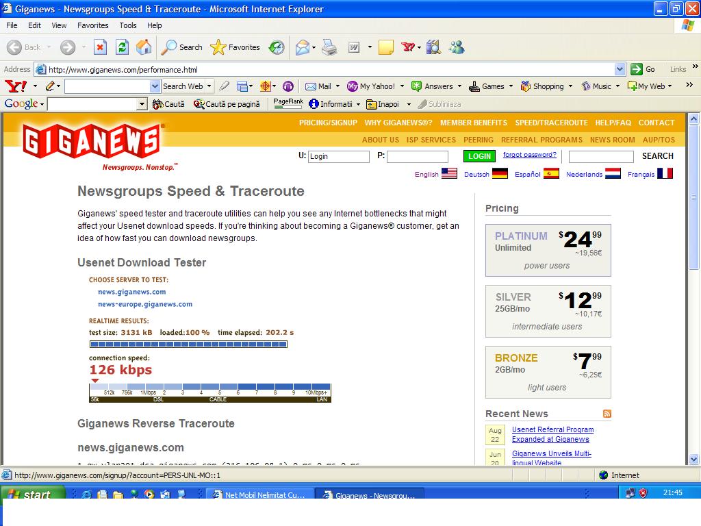 Cred ca nu am fost eu destul de clar, captura de dimineata era facuta la serviciu, unde avem net adsl de la romtelecom, de un mega, de aceea eram dezamagit, poate faptul ca "teava" se imparte intre toate calculatoarele din firma, plus ca reteaua este wireless, cu access point, poate asta mai taie din viteza. Captura dupa download pe zapp:
