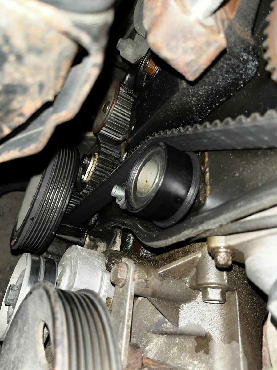Dupa un drum la mare la inceput de Iunie, au ajuns tampoanele de motor OEM de la mama Koreea (3 buc, cel hidraulic gasit in BG tot OEM), thanks @pompiliu92. 2 saptamani mai tarziu cand sa plec in oras, dupa pornirea motorului, dau sa plec si scotea un zgomot dezordonat.. las masina in parcare si ca un roman veritabil (cum spune si Tiriac.. avioaneLE) am luat cealalta masina. Cum nu am stare, in aceiasi seara in jur de 21:30 desfaceam distributia si gasesc rola intinzatoare (OEM Opel si fo 20k) cu o bucata din suport, rupta.. rezolvat cu o rola de pe la colegi.