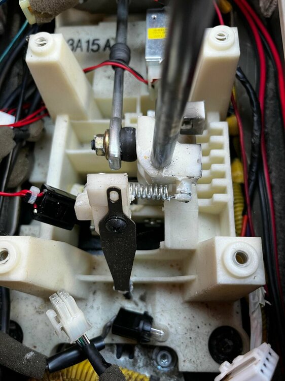Sa facem un update.. Undeva pe final de Martie, dupa 19 ani de serviciu, arcul de la schimbator a cedat nervos si desigur ca a fost reparat romanesc prin a crea o noua ureche: Dupa ce sa mai incalzit prin aprilie a urmat o verificare de rugina pe spate (verificat ultima data prin 2017) si completa cu ulei in praguri si portbagaj: