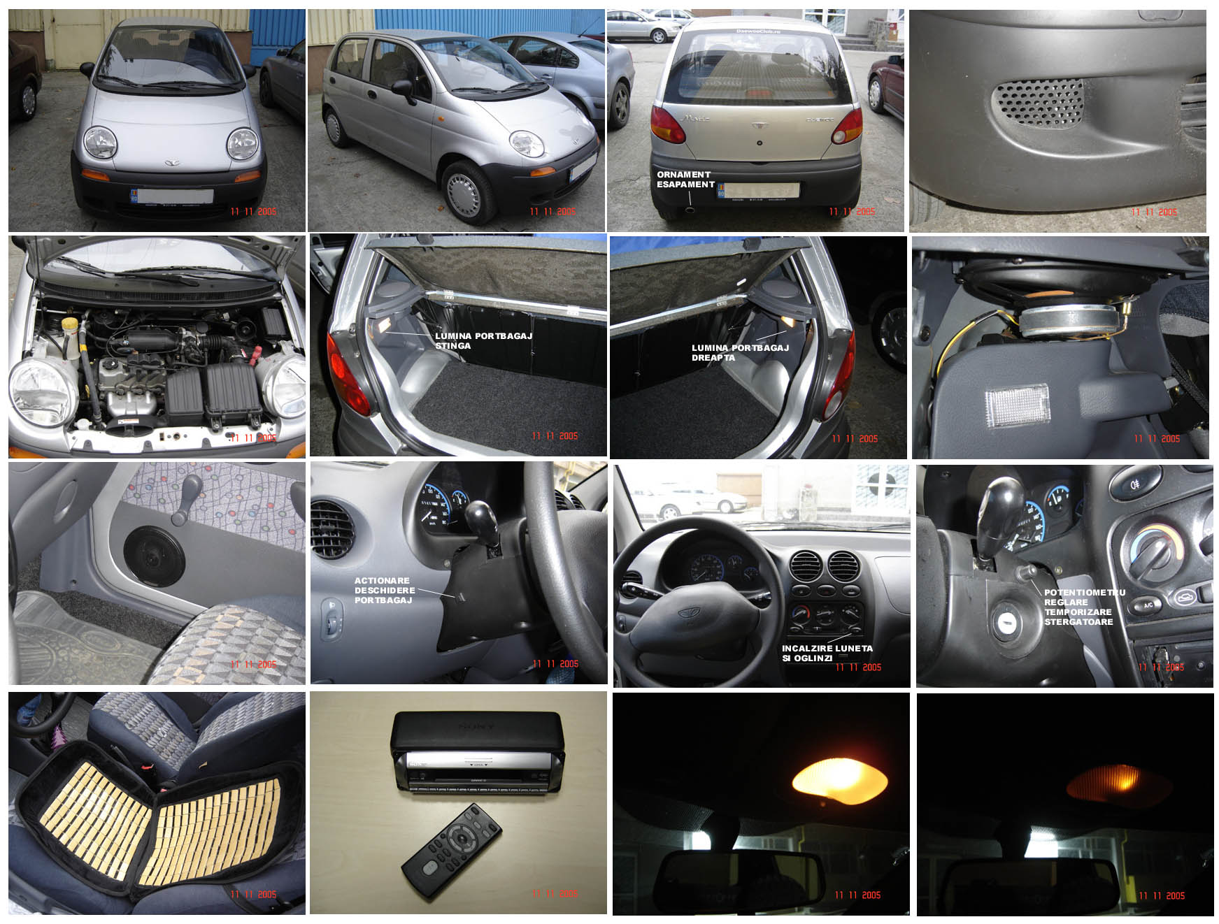 Sint posesorul a doi Matizaci, un Euro II E/AC si un Euro III cu aceleasi prescurtari in coada. Euro II-ul este din octombrie 2002, are 35000 de km si este condus de sotia mea, care-mi scoate capitze de peri albi si-mi maninca sanatatea, pe motiv ca nu are grija de ea asa cum am eu de a mea. O scurta trecere trecere in revista pentru Euro II: alarma si inchidere centralizata + radiocas Panasonic + 4 boxe JVC, huse si presuri, total investitie = in jur de 18 milioane! Ah, uitasem policioara cu pasla, care acopera interiorul portbagajului, la vremea respectiva aceasta se cumpara separat, motiv pentru care, dupa doua luni, prin comanda speciala la Craiova am achizitionat-o cu uriasa suma de 900000 lei. Am mai dotat-o cu trusa de scule, lampa portativa si compresor pe 12V. In aprilie a.c. am achizitionat si Matizacul Euro III, care acum este in virsta de 7500 km. Curiosii pot cauta in arhiva posturile cu problemele acestui tip de masineta, eu fiind ceva mai norocos si scapind de SNS (Sindromul Nepornirii Spontane) imediat cum am dat de Autonet. Caracteristicile tehnice le gasiti pe felurite site-uri, inclusiv in postarile anteriorare, eu nu ma voi opri decit asupra imbunatatirilor aduse de mine de-a lungul vremurilor scurse din aprilie si pina acum! Cind am luat-o, datorita farmecului personal si nu numai, am primit cadou huse si presuri meseriase, de mare rafinament coloristic, potrivindu-se perfect cu interiorul si alura limunzinei. Inca din prima zi, l-am dotat cu alarma, inchidere centralizata, CD player MP3 Sony CDX-R3350 si patru boxe Alpine, care functioneaza toate ireprosabil si-n ziua de azi, he-he! Alarma + inchidere = 6 milioane si ceva, Sony + Alpine = 8 milioane si ceva, rezultind dintr-un foc circa... hai sa zic 15 milioane. La ceva vreme a urmat deschiderea electrica a portbagajului, mai mult din cauza ca ma tot omorau portarii cind plecam de la servici sa le arat portbagajul! Evident, dupa ce mi-am pus deschidere, nu m-a mai controlat nici dracu'! Ca tot veni vorba de portbagaj, i-am convins (contra-cost, ce credeati) pe baietii cu pricina sa-mi monteze si doua lampi de Cielo in respectiva incinta. Din acest motiv, indiferent de ora din noapte sint posesor de fotoni in momentul in care am nevoie sa caut ceva in cei 170 de litri ai portbagajului! Concomitent si aproape simultan au venit oglinzile incalzite si temporizarea REGLABILA la stergatorul de parbriz (pentru Steph, he-he!), lucruri care-mi fac viata mult mai roz si mai usoara pe vremuri ploioase, iar in curind, pe zapada! Total cu spaga = 3 milioane. Cu ocazia schimbului recent de oglinzi, din cauza ca se exfoliasera putin (se pare ca din cauza oglinzilor de calitate regretabila), am mai achizitionat si un ornament de esapament, fapt care-i ofera un plus de sarm masinetei privite din spate, in valoare de 325000. Ca tot veni vorba de sarm, am lucrat si asupra fetei, in acest sens acoperind gaurile lasate neispirat de fabricant in lipsa proiectoarelor, cu niste capace dragalase in valoare de 50000 perechea. Pentru a-mi spori confortul la volan si a-mi masa posteriorul, in acelasi timp, am premiat scaunul soferului cu o "imi-scapa-momentan-numele" in valoare de doua sute si ceva de mii. I-am dotat portbagajul cu felurite surubelnite, chei fixe si tubulare, spray contact si lubrifiant, vreo doua pensulite, saci de plastic cu care invelesc ocazional feluritele produse ce au sansa sa fie transportate in portbagaj masinii mele, vreo doua pensule cu care sterg periodic motorul, banda izolatoare, compresor electric pe 12V, lampa portativa cu fir de 5 metri, aspirator de masina, deodorante sub forma de braduti si gel, citeva cirpe de bumbac, smirghel, scoth brite, 1l de lichid de parbriz si o mai fi cite ceva, dar nu-mi amintesc momentan. Sint in negocieri cu mine insumi sa-l dotez cu pneuri 165/70/13 sau dupa cum am vazut recent pe un site vinzator de Matiji, 175/60/13 (???) si sa-mi donez Continentalele sotiei, care are Montane originale. Mentionez ca sint cel mai mare fan al masinii mele si o feresc pe cit de mult pot de zgarieturi si mingile copiilor de pe linga bloc. O spal la sfirsitul fiecarei saptamini si-i curat motorasul si capota, cit se poate, cu pensula si cu o cirpa usor umezita, o aspir personal si ii sterg interiorul. Ma simt EXCELENT cind conduc, vara in racoare, acum la caldurica, cu o sonorizare perfecta, zic eu, pentru genul asta de masina. Nu am de gind sa o schimb prea curind! Si nici pe a nevesti-mii!