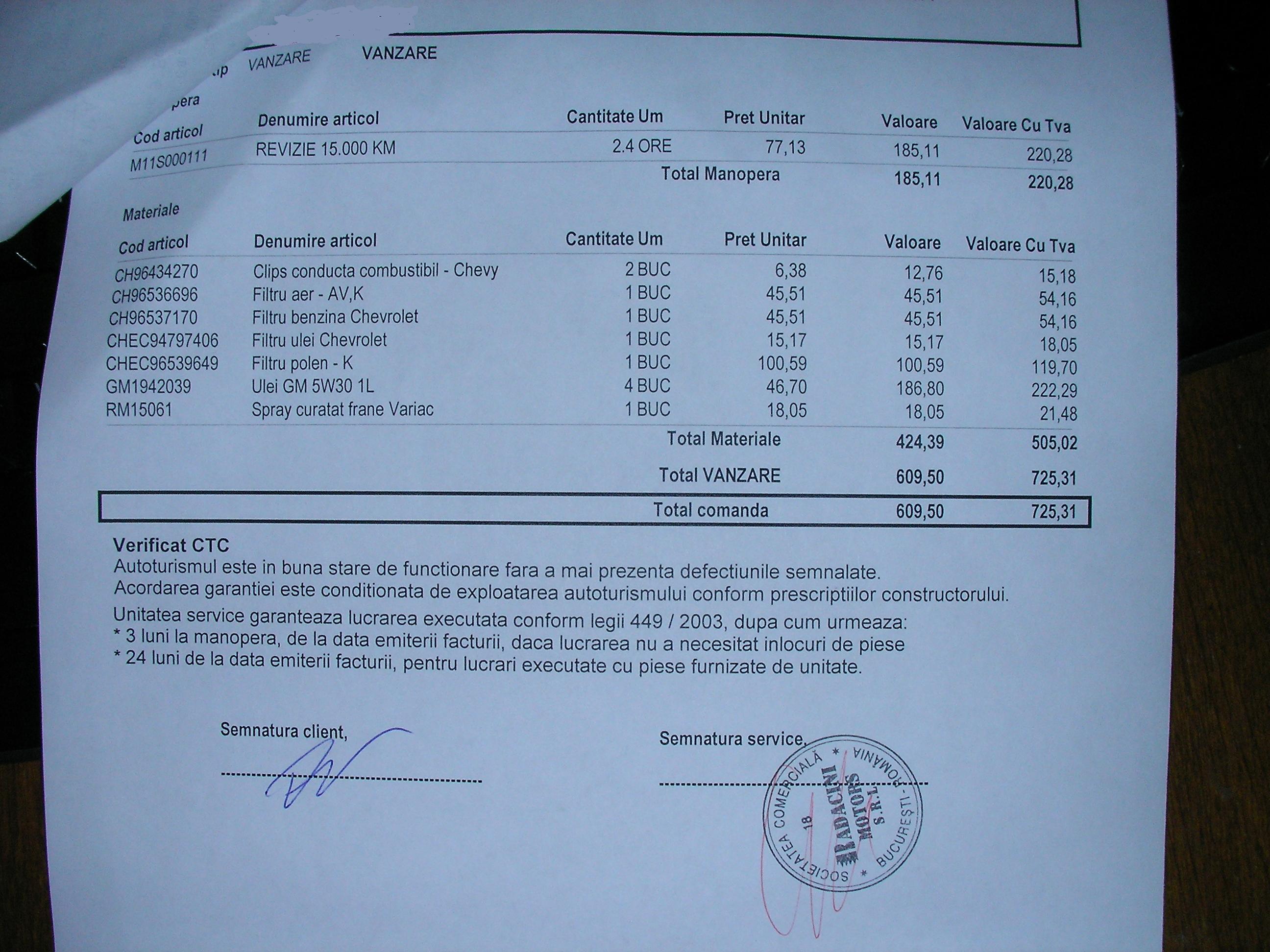 radacin ora 9-36 intra in service la 10-50 a iesit.a fost k service radacini,filtrele de aer si cel de polen le am in masina(fara sa cer eu asta),ulei verificat pe loja e putin submaxim.(4 litri au bagat) -