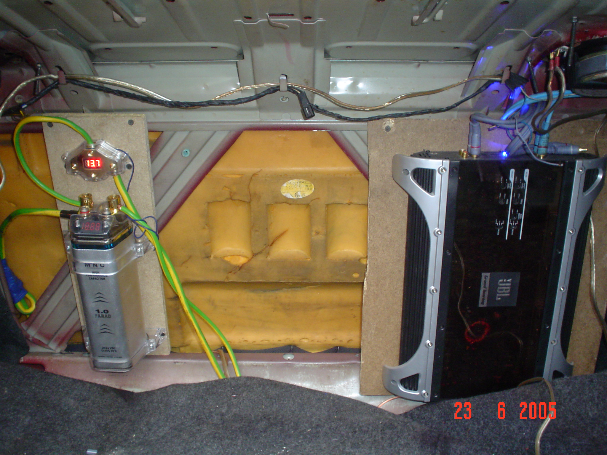 Eu mi-am montat singur si difuzoare si mp3 si amplif si condensatorul. Pe fata in usi am bagat Infinity 6500cs, diametrul de 16.5 parca, pe spate ovale 6x9, infinity pe 2cai, cele pe 3cai au bube, se cam ard al treilea tweeter, majoritatea de asta se plang, 2 amplif JBL GTO 75.4,din pacate unul a plecat, am ramas doar cu cutia in casa, prin august sper sa-mi iau altul, sau un Infinity tot pe 4canale. Am un trapez band-pass, JBL,cutiile acelea cu gura de bass portocalie, iar difuzorul tot un Jbl Gt12, diametrul de 30cm, 250rms, urmeaza sa-l schimb cu un Infinity Kappa, sper eu un Kappa Perfect, mai depinde si de cati bani ai. Ca HU am un Alpine 9827RR, la fel in august intentionez sa-l schimb tot cu un Alpine 9835 sau in cel mai rau caz Alpine 9853. Sunt foarte multumit de HU de la Alpine, am avut de toate, Sony, care e cam varza, Pioneer care sunt bune,7600MP este excelent,are o gramada de reglaje, se aude un pic mai tare la volum, dar nu la fel de clar ca Alpine, Jvc este la nivelul lui Sony. Alimentarea este de la baterie,diametrul cablului de 20,siguranta pusa imediat langa bacterie, minusul luat de pe suportii de bara spate.Condensatorul de 1F isi face si el treaba, nu mai omor bacteria. HU a fost 8mil acum un an, l-am prins cu garantie 2ani, inclusiv partea optica,am fost si eu mirat. Rotundele din usile fata au fost 4.3mil, ovalele 3.1mil, 7.2milx2 amplifurile, dif SW 2.5mil, cutia o aveam de ceva vreme, am avut chiar 2cutii identice insa una am vandat-o, si acum plang dupa ea. Condensatorul 2mil, nou-nout cu garantie 1an. Am sa adaug si cateva pozne. scuze de jegul din masina dar nu am mai facut curat de 2sapt ca nu prea am mai avut timp, si sunt si in curatenie. Si cutia este murdara de la sacii de glet carati, dar iese cu aspiratorul. geamurile fata nu au nici o problema, coboara pana jos, manivela nu atinge disuzorul, sunt la fix. TW din usi sunt in stare de functionare, dar nu le-am mai legat, imi sunt de ajuns cele de la infinity. Dif din bord sunt si ele functionale, dar sunt oprite din meniul MP3-ului, finalii nu sunt alimentati. TW mi-au ramas de la niste dif pe 16 Alpine,care nu aveau filtre si la care am renuntat pt cele Infinity care au si filtre. Masina este un GL din korea '95 cu AC si toate cele inafara de geamuri electrice.