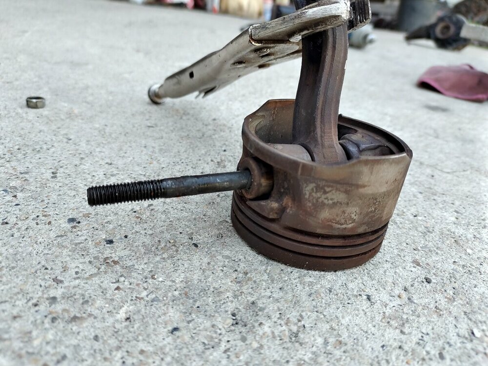 Dj_Dark Posted September 6, 2021 Author Share Posted September 6, 2021 I-am comandat, dar nu de gura voastra ci fiindca am rupt unul la montaj 🙂 Totodata am descoperit ca se gasesc din ce in ce mai greu piese de daewoo 🙂 Am gasit intr-un final goetze cu greu, urmeaza sa ii si primesc. Pana atunci am montat biela noua in locul celei strambe. Am reusit acasa cu o presa improvizata din surubul de jos al alternatorului (singurul de lungimea potrivita) o tubulara, vre-o 2 saibe si o lampa cu gaz. A fost mai usor decat am crezut, la remontare am reusit sa il bag chiar cu mana incalzind doar biela, diferenta de temperatura intre biela si boltul rece a fost suficient. Intre timp, fiindca se apropie inceputul scolii si se termina distractia, am scos restul pistoanelor, am montat ambreiajul/cutia si am urcat ansamblul pe masina folosind o metoda foarte neortodoxa si noua pentru mine 🙂 Am zis ca mai bine sta sus pe masina la un adapost oarecare decat cu baia in sus pe un palet 🙂 2 1 Link to comment