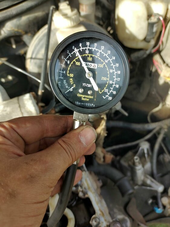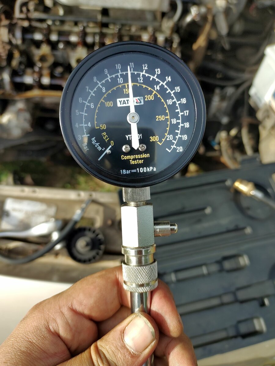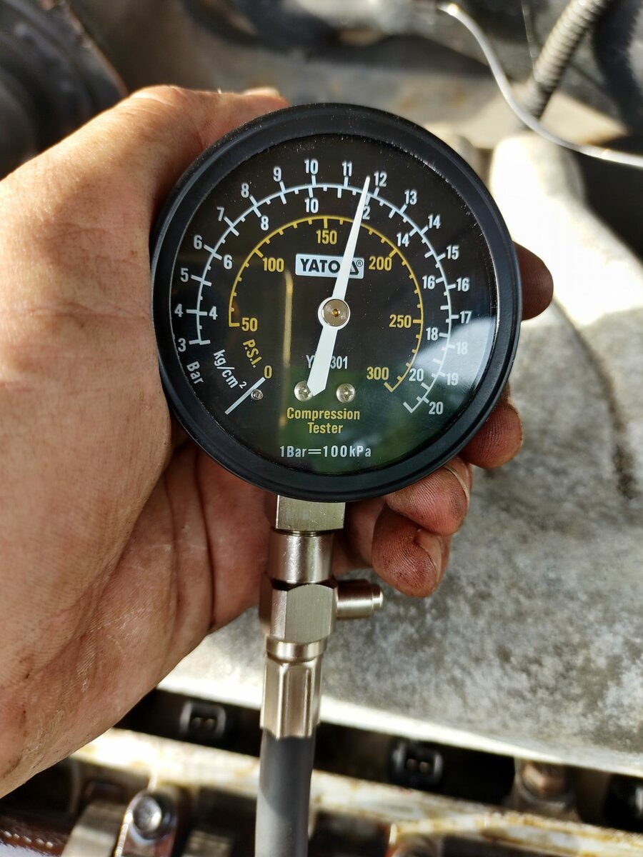 Dj_Dark Posted September 19, 2021 Author Share Posted September 19, 2021 S-a mai lucrat. Ar mai fi clapeta de acceleratie, radiatorul si alte cateva nimicuri (gen evacuare 😄 ) azi cel mai probabil o pornesc. Am facut si un test de compresie la rece asa, rezultatele vorbesc de la sine. Cam jos pe cil 4 (supapele nu etanseaza corect) dar suficient ca sa porneasca in 4. Totodata am observat ca am ciupit simeringul de la pompa de ulei, mi s-a parut mie ca l-am intors la montaj, dar am vrut sa cred ca doar mi s-a parut 🙂 . Vedem cat pierde in functionare si daca e cazul redesfac, momentan vreau sa il vad pornit. Link to comment
