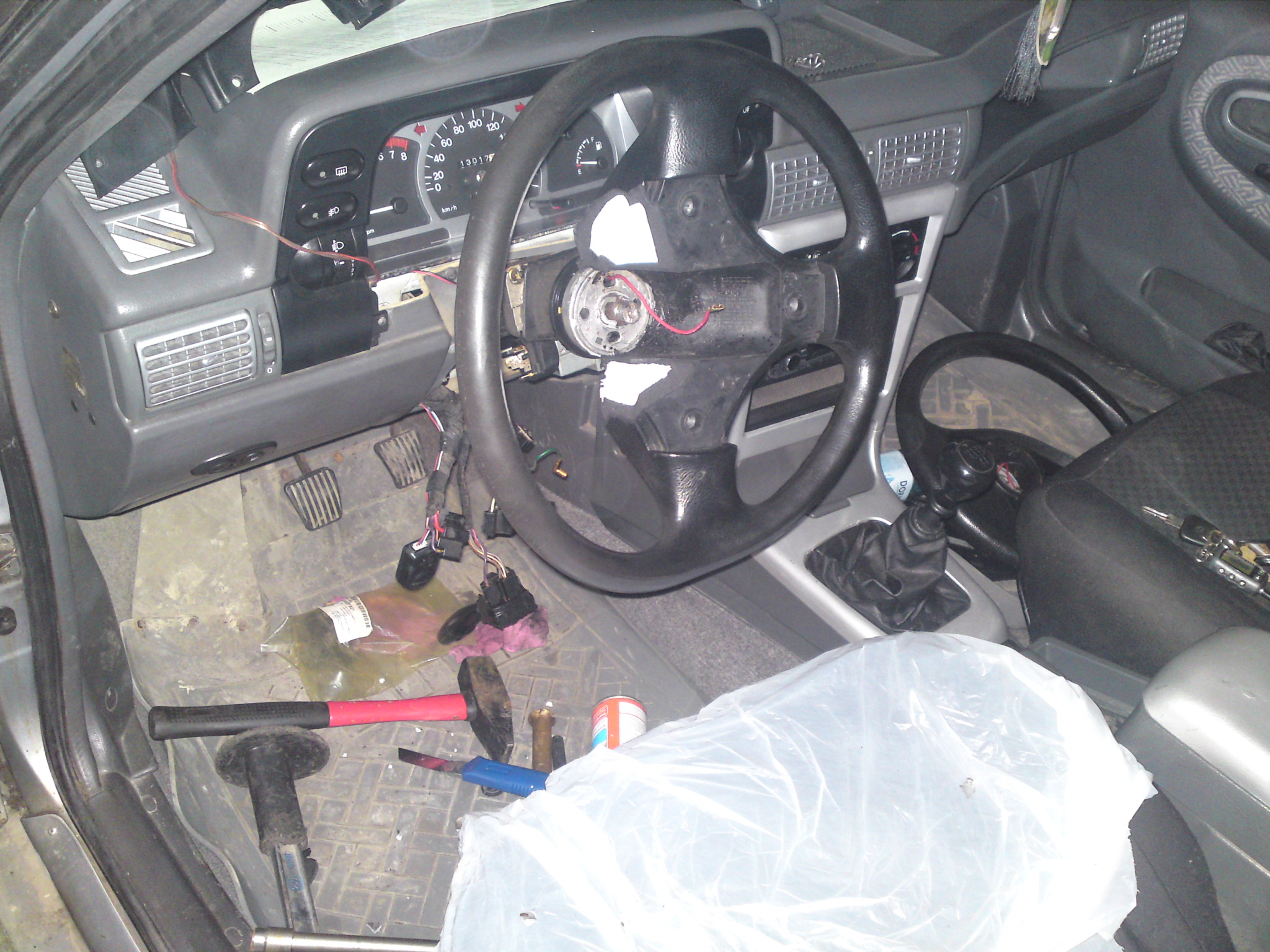 Costi VLN Posted January 18, 2011 Author Share Posted January 18, 2011 (edited) Hai sa va las masca... Azi dimineata am plecat spre mecanicul meu sa scoatem volanul.Ajuns la ea,bagat masina in garaj si dai bataie.Nu am reusit sa-l scoatem bine nu avea nici presa si m-a sfatuit sa caut un service cu presa. Mers apoi la Radacini Dorobanti,facut intrarea in service si s-au apucat baietii de treaba.Dat cu sray,asteptat cam 5 minute pus presa pe volan si inceput operatia de scoatere a volanului.Nu trece un minut si se aude trosc,s-a rupt presa. Acum vazand baietii cu ce de-a face,se pare ca nu m-au crezut cand le-am zis cai dezastru,desface plasticele aparatoare ale volanului si vazand ca am si cuplajul elastic cumparat l-au luat la ciocane.Nimic,in juma de ora au reusit sa nenoroceasca axul.Apoi,m-au intrebat daca mai am nevoie de volan,spunand nu,s-au apucat sa-l taie,sa-si faca loc de lucru.Luat si la dalta la fel,fara nici un rezultat. Au ramas masca,spunand ca de cand sant ei nu au intalnit asa ceva. Pana la urma au demontat coloana,pus pe banc,taiat volanul definitiv,l-au macelarit ce sa mai,apoi prin in menghina si luat la flex.Intr-un tarziu a fost scos,insa axul a trebuit dat pe strung pt refacere a filetului.Alta distractie si asta. Apoi,dupa o ora,atat a durat operatia la strung,unde s-a facut filet nou si piulita,s-a trecul la montarea acestuia.Montat cuplajul elastic,bucsa de teflon,prin colierele sub aceasta sa nu "curga"pe ax,dupa care vedem ca are joc din rulment,cel mic de la intrarea axului in tija.Noroc ca au avut ei unul,l-am montat,inecat in vaselina,la fel si cu bucsile si montate la loc pe masina.Apoi acasa am schimbat emblema de pe volane intre ele. Vreau sa zic,ca acum nu mai am nici un pic de joc la directie,initial era o clampanire la denivelari. Vreau sa laud baietii,s-au straduit,de nota 10 ce sa mai,insa cam duc lipsa de scule saracii.Se cam "bat" pe chei. Partea tare a fost la iesirea din service sa platesc si sa-mi iau actele.Ora de manopera 42 lei fara tva.Lucrarea a durat de la ora 11-05 pana la 15-50,drept urmare am platit 192 lei,manopera.Lasat si la baieti de o bere si iaca asa,am dat pe volan 40 lei si montatul m-a costat 250 lei.... Nu mai pun ca am dat pe cuplajul elastic 110 lei + 8 lei pe bucsa silicon,cea de plastic.Oricum trebuiau schimbate. .Macar am volan de Astra GSI.... Acum,fara gluma,am facut treaba buna,am scapat de jocul volanului clampanitul coloanei la denivelari.Insa daca stiam ce patesc,il dadeam draq de volan... PS.Faza cea mai tare a fost cand baietii au vazut autocolantul,zicand"Ba,sa facem treaba buna.altfel ne baga pe forum asta" Poze din timpul si dupa montaj.... Edited January 18, 2011 by velican_costi Link to comment