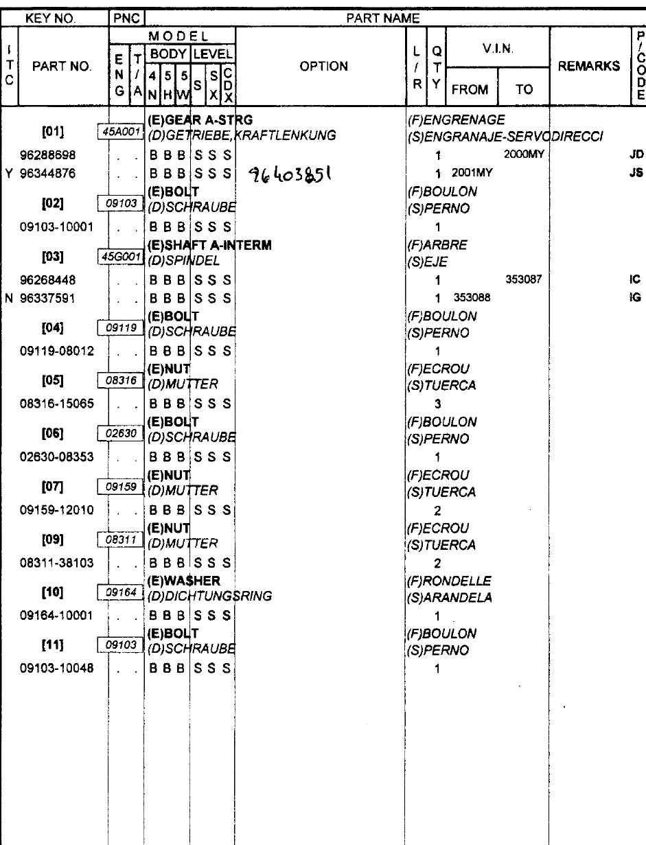 varais Posted July 7, 2009 Share Posted July 7, 2009 (edited) Rafi daca afli codul da-mi si mie un Pm pentru ca si eu am aceeasi problema. De obicei vanzatorii o stiu doar pe cea de Nubi I. Asta ar trebui sa fie din cataligul de Nubi II. Conform celor de aici : http://www.maycon.ro/download/pieseDaewoo.xls Cuplaj caseta diectie ar fi : 96337591 Codul asta se regaseste si in si in atasament la pozitia 3. Cred ca o vom lua razna cu treaba asta. Sper sa nu te induc in eroare dar cam asta cred eu ca este codul corect pentru Nubira 2. Edited July 7, 2009 by varais Link to comment