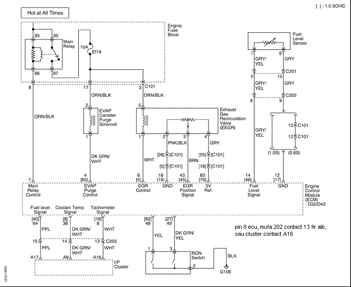 pescariotul69 Posted August 21, 2009 Share Posted August 21, 2009 Salut Am cumpărat SH un Cielo din 1997 , problema care este ... nu îmi mai indică nivelul sondei la apă. am înlocuit sonda dar tot nu merge , problema care este , am fost la un electrician şi l-am rugat să verifice firul care leagă sonda , dar nu are schema electrică de la un asemenea model . Rugămintea mea care este ... poate aveţi careva acea schemă electrică şi dacă binevoiţi a mi-o trimite pentru a rezolva problema , pentru că temperatura apei nu creşte , autoturismul funcţionează ireproşabil , nu mi se mai aprinde nici un alt martor , de aceea vă rog frumos care aveţi schema să binevoiţi a mi-o trimite. Vă mulţumesc anticipat Link to comment